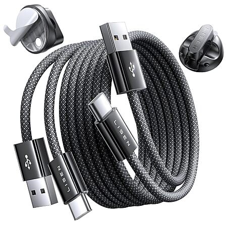 2pk 3' LISEN USB-A to USB-C Charging Cables + 2pk Magnetic Cable Clips